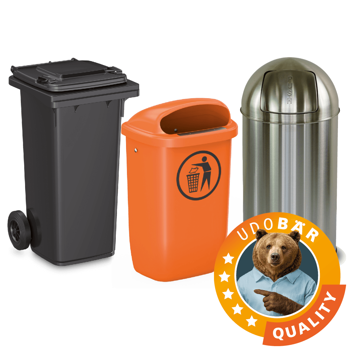 Met de stabiele UDO BÄR-afvalcontainers voert u afval direct af – praktisch, robuust en hygiënisch voor iedere werkplek.